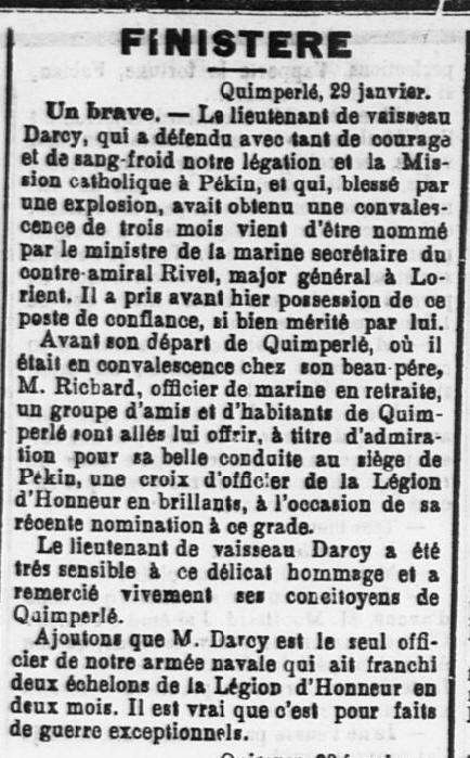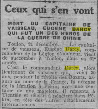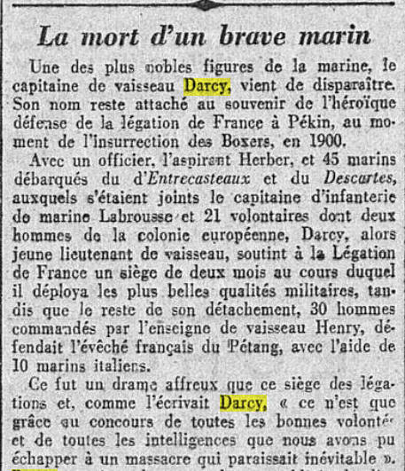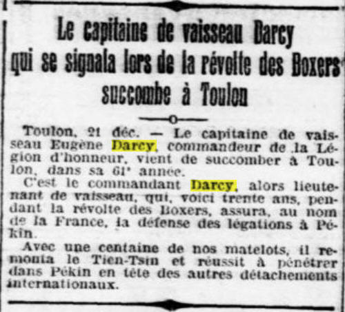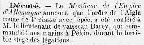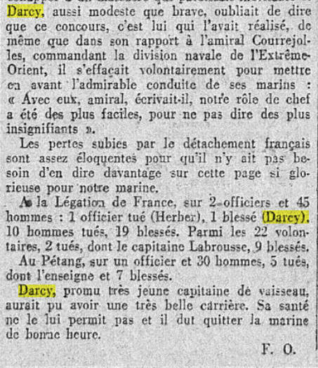 juin 1900, le LV Darcy commande le corps de débarquement des