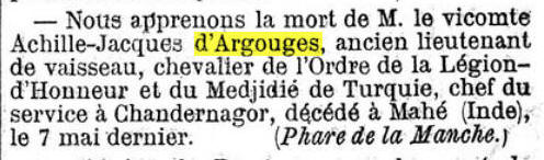 LITTEAU (Calvados) - Décédé le 8 mai 1868 à MAHÉ (Inde)