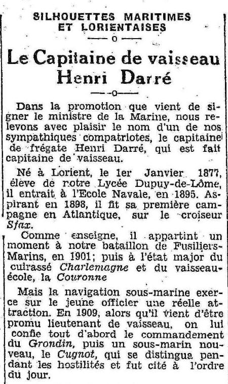 Commandant le sous-marin "CUGNOT", Station des sous-marins de
