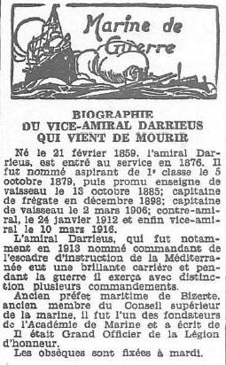 1916, il commandera la 2ème Escadre en Méditerranée.