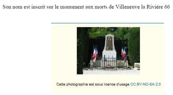 Né le 4 mars 1920 à VILLENEUVE de La RIVIERE (Pyrénées-Orientales) -