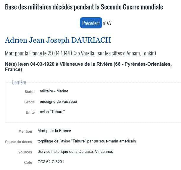 Oran, alors affecté à Marine Indochine , il arriva à Saigon début