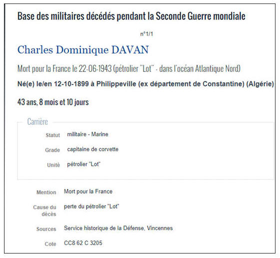 PHILIPPEVILLE, ALGÉRIE - Disparu le 22 juin 1943 en Atlantique Nord