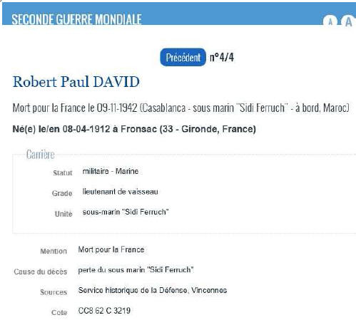 FRONSAC (Gironde) - Disparu en mer le 9 novembre 1942.