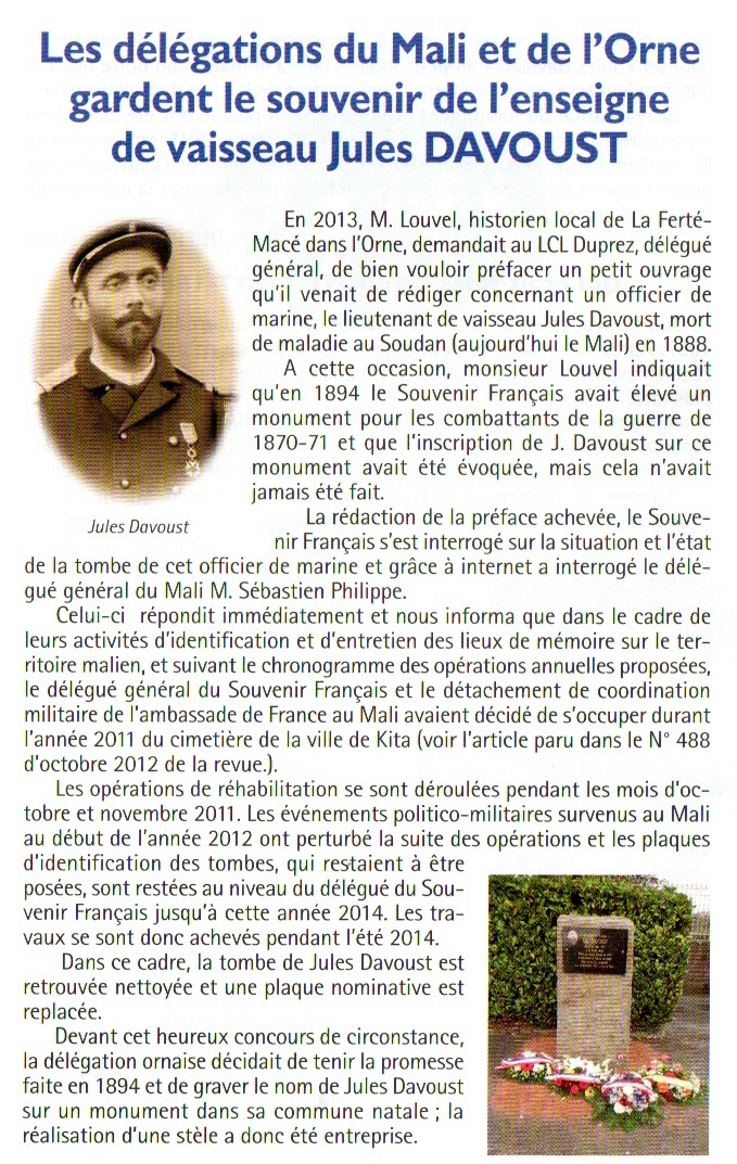 FERTÉ MACÉ (Orne) - Décédé le 26 décembre 1888 à KITA (Soudan)