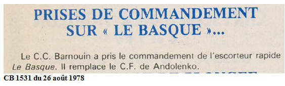 28 janvier 1977 Commandant de l'escorteur rapide "LE BASQUE"