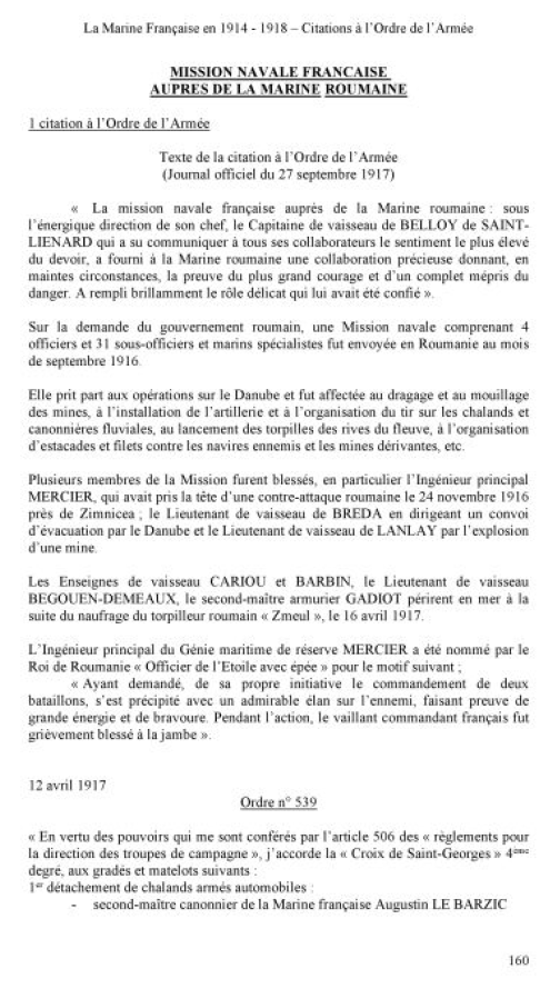 citation à l'ordre de l'Armée navale.