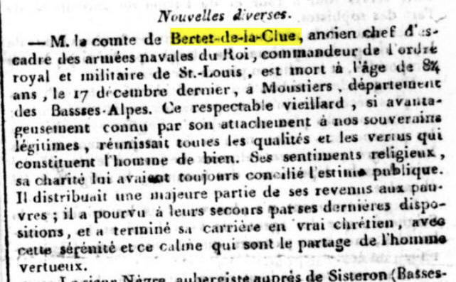 décembre 1815 à MOUSTIERS-SAINTE-MARIE (Alpes-de-Haute-Provence)
