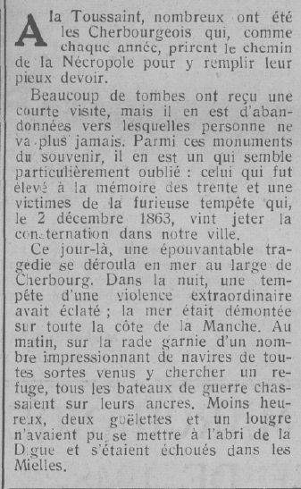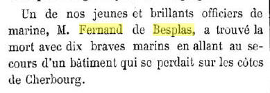 1863, à Cherbourg, en essayant de sauver un équipage naufragé