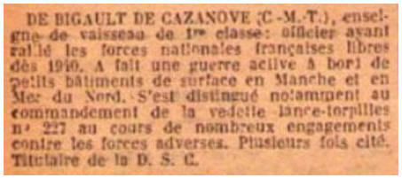 novembre 1942 le commandement de la «M.T.B. 227» (Vedette