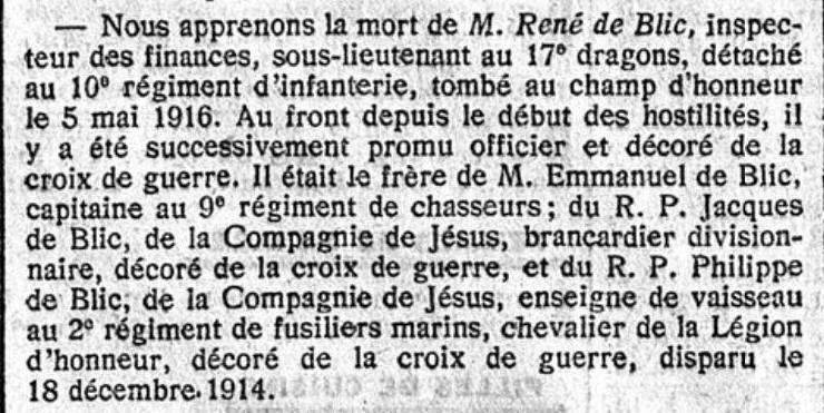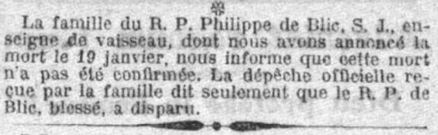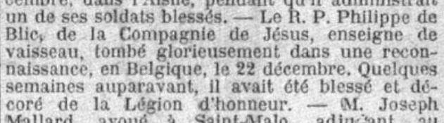 novice de Blic de la Compagnie de Jésus est mobilisé, il rallie