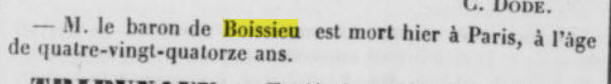 Mort le 7 février 1846, à Paris, il est inhumé au cimetière du