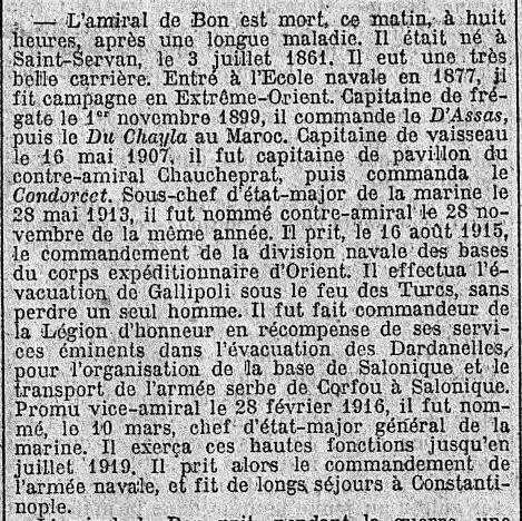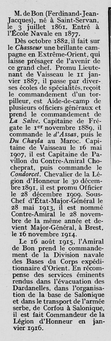(1868-1923) et le vice amiral Ferdinand De Bon (1861-1923)