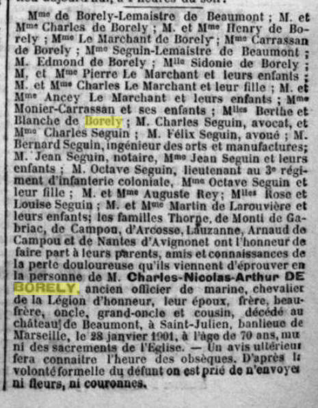Charles Nicolas Arthur De BORÉLY