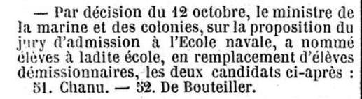 "faute contre l'honneur". Rayé des matricules le 8 novembre 1873.