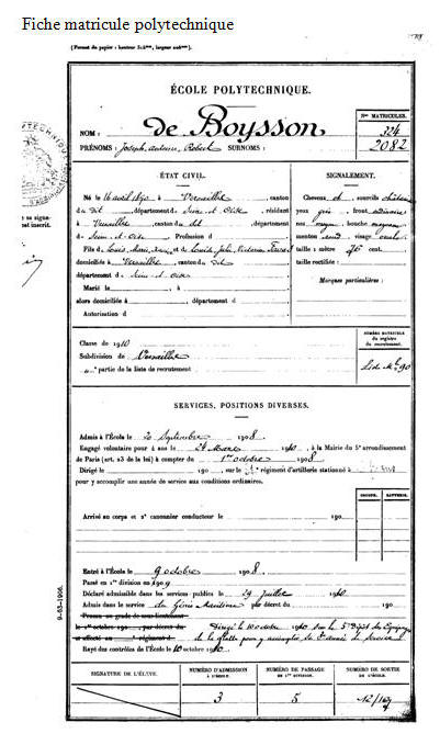 Élève de l'École polytechnique le 1er octobre 1908, opte pour le