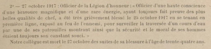 1917, en se tenant en première ligne, exposé au feu de l'ennemi,