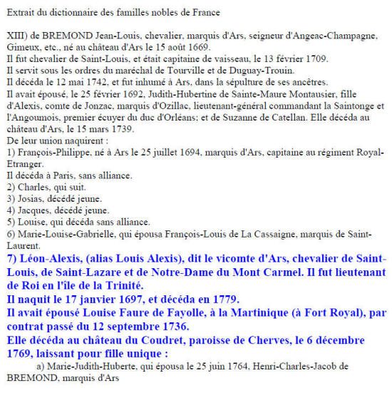 marquis d’Ars, d’Aguesseau déclare que « les ancêtres dudit