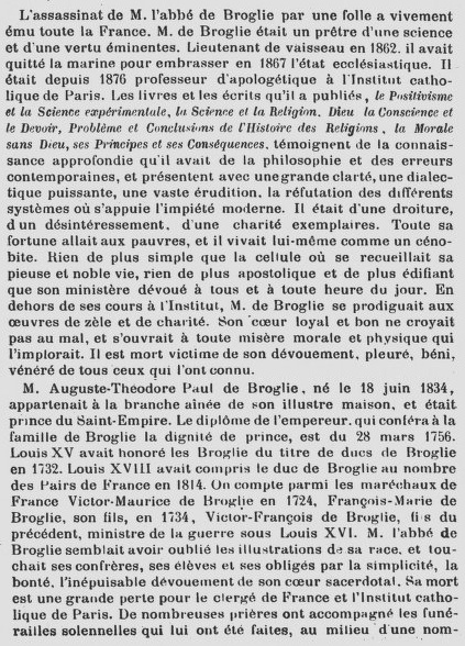 Dans ses publications, l'abbé de Broglie se montra toujours un
