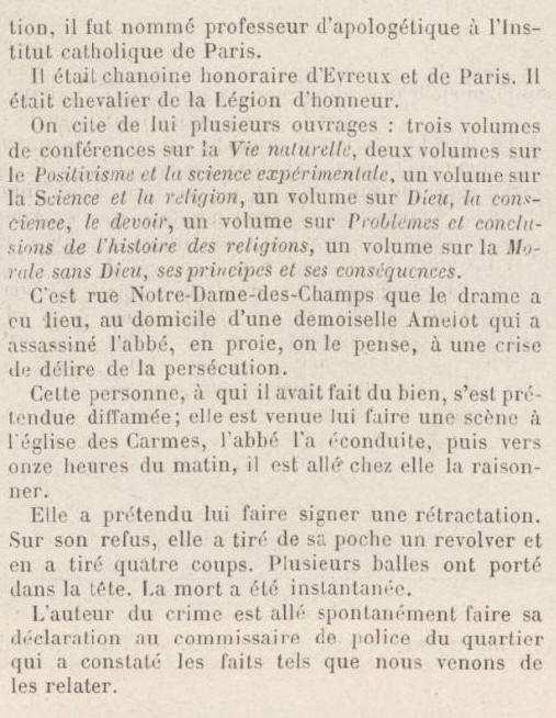 les théories de Spencer et de Darwin. Élu chanoine de Notre-Dame et