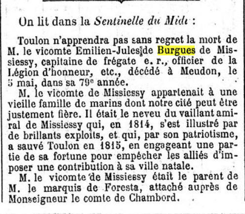 Burgues de Missiessy, ancien militaire capitaine de vaisseau et de