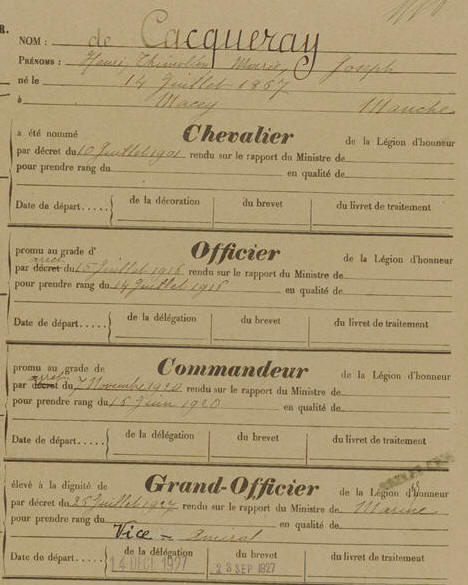 Légion d'Honneur le 26 juillet 1927.