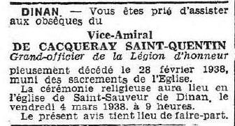 - Décédé le 28 février 1938 à DINAN (Côtes-d'Armor).