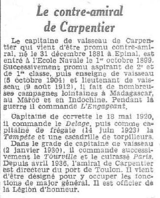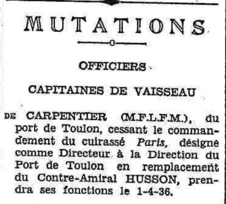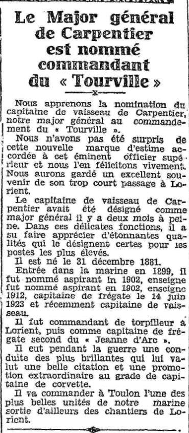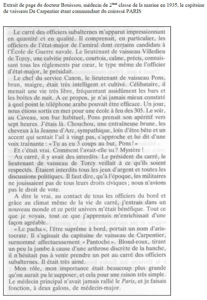 TOURVILLE" du 21 septembre 1931 au 21 septembre 1933, et le cuirassé "PARIS"