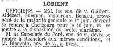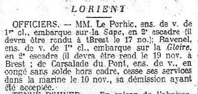 LECOURTOIS). Au 1er janvier 1908, en instruction sur la "COURONNE",