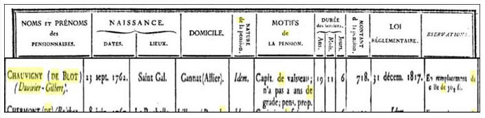 En retraite le 31 décembre 1817, pension proportionnelle, n’a pas