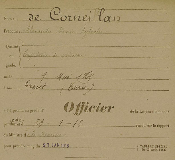 Capitaine de frégate le 1er janvier 1912.