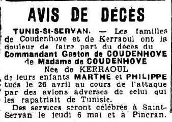(Ardennes) - Décédé le 18 avril 1943 au CAP BON (Tunisie)