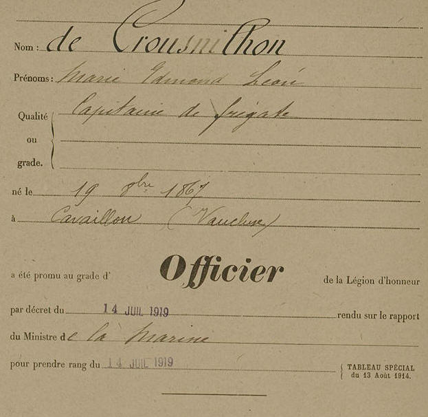 (Cdt Henri De FAUBOURNET de MONTFERRAND).