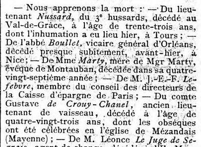 à LAON (Aisne) - Décédé le 4 février 1913 à SAINT PIERRE DES LANDES