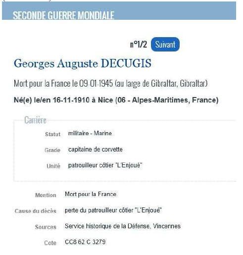 juillet 1940 le lieutenant de vaisseau Décugis a reçu la citation