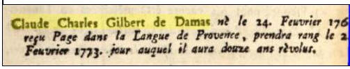 de Damas, capitaine de vaisseau (24 mars 1772) et de sa cousine Anne