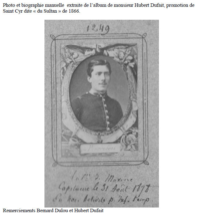 Sous-Lieutenant d'Infanterie de Marine le 1er octobre 1868.