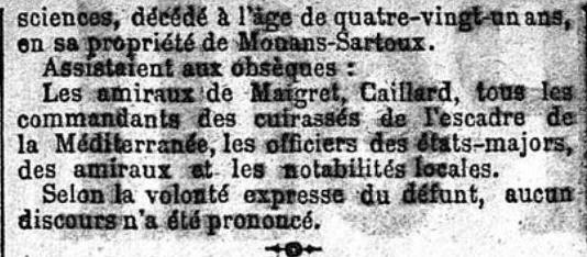 CARPENTRAS (Vaucluse) - Décédé le 12 août 1901 à MOUANS-SARTROUX (Alpes