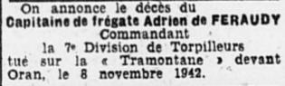 ministérielle du 2 septembre 1929, le LV de Féraudy a reçu un