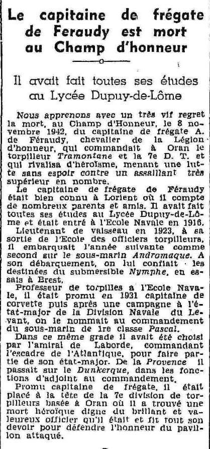 lors du débarquement allié à Oran, les trois torpilleurs qu’il