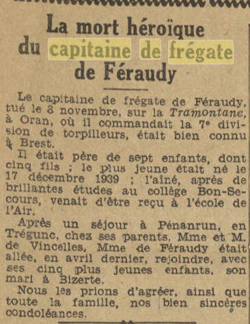 l’ordre de l’Armée de mer : « Au cours de l’attaque de l’Afrique du