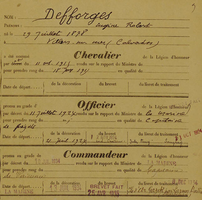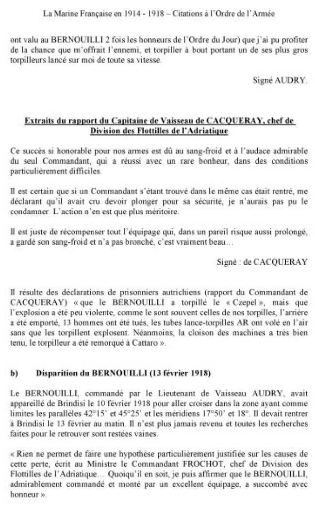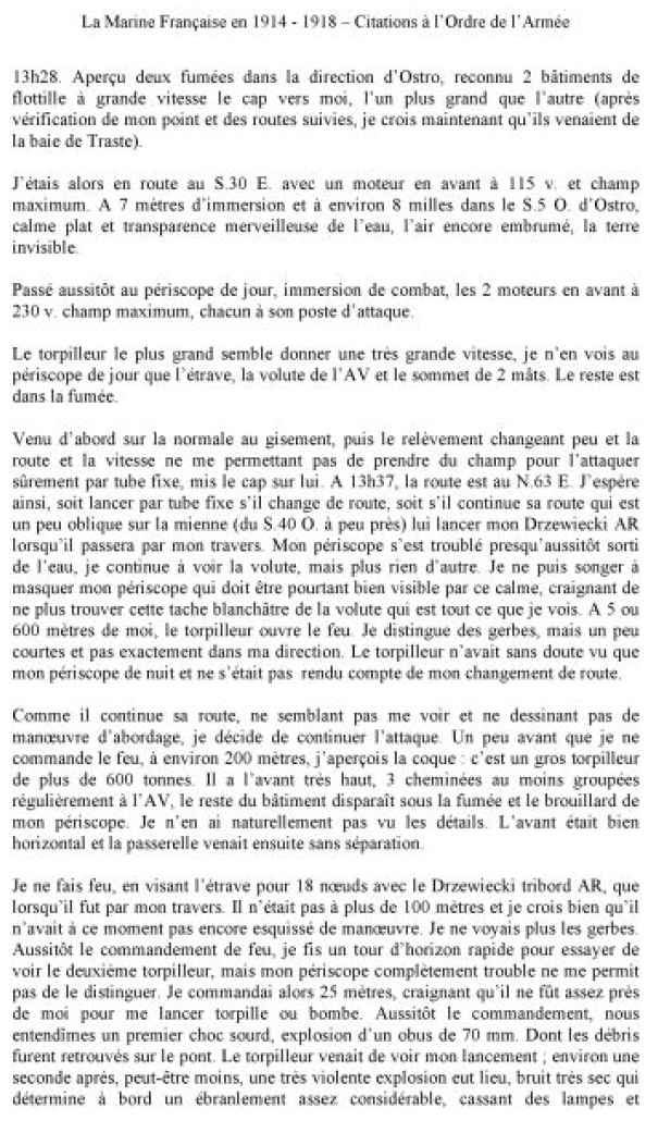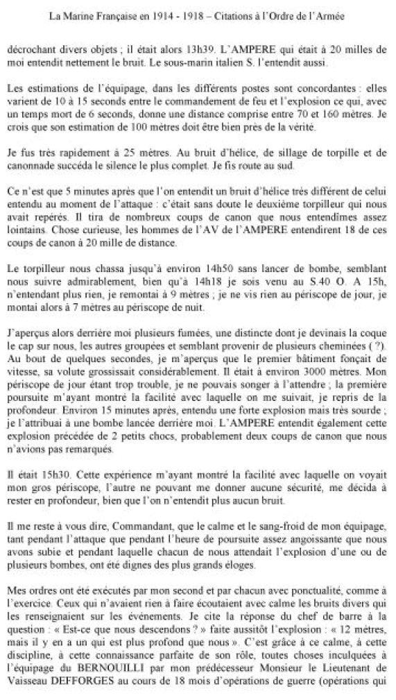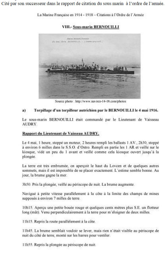 14 février 1916, Commandant le sous-marin "BERNOULLI".