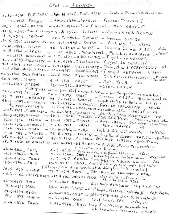 Complément Etats de service, rédigé à