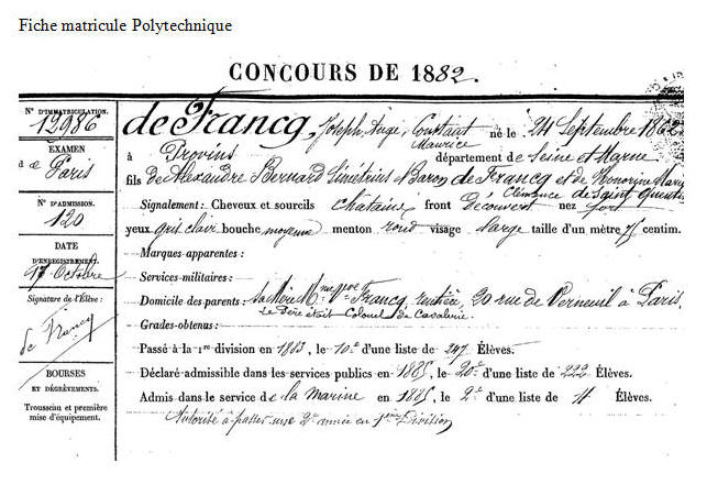 Élève de l'École polytechnique en 1883, opte pour la Marine