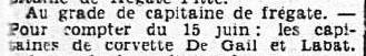 l'enseigne de vaisseau A. de Gail a reçu un témoignage officiel de