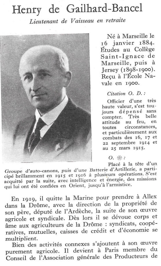 Henri de Gailhard-Bancel, né en 1884 à Marseille, président, puis