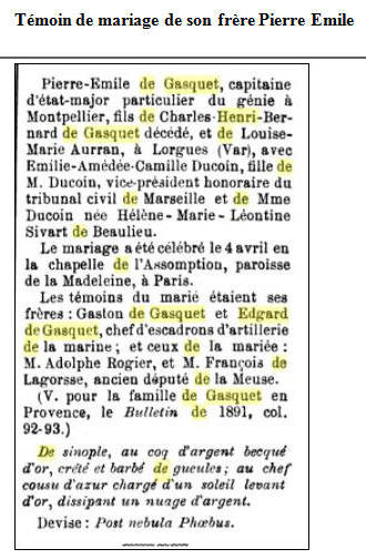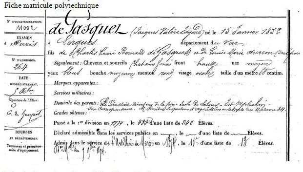 de GASQUET, Ingénieur du génie maritime promotion 1870