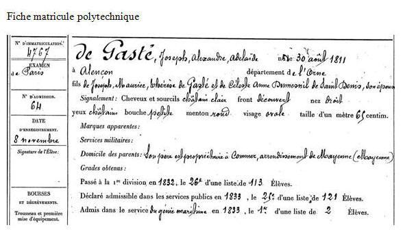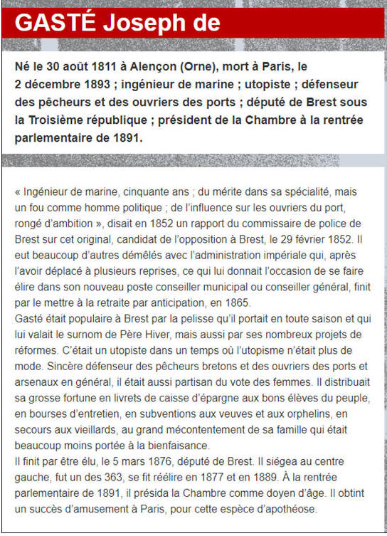 Né en 1811 à Alençon, polytechnicien, Joseph de Gasté arrive à Brest