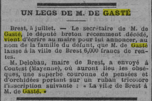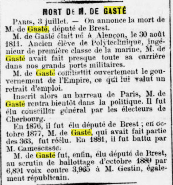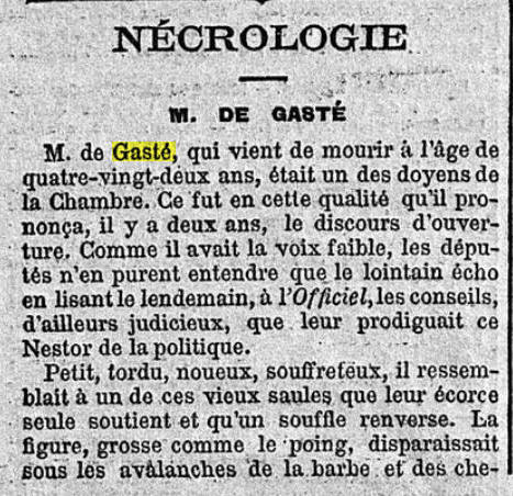 avril le nom de « de Gasté ». Gérard Cissé, notre historien maison,