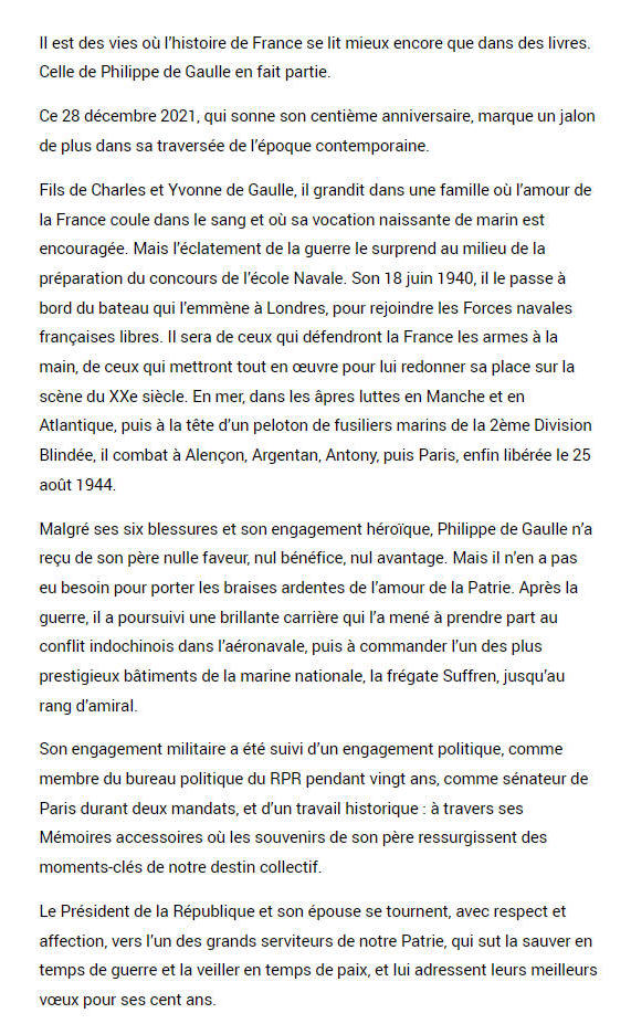 Communiqué Palais de l'Elysée / 28 décembre 2021